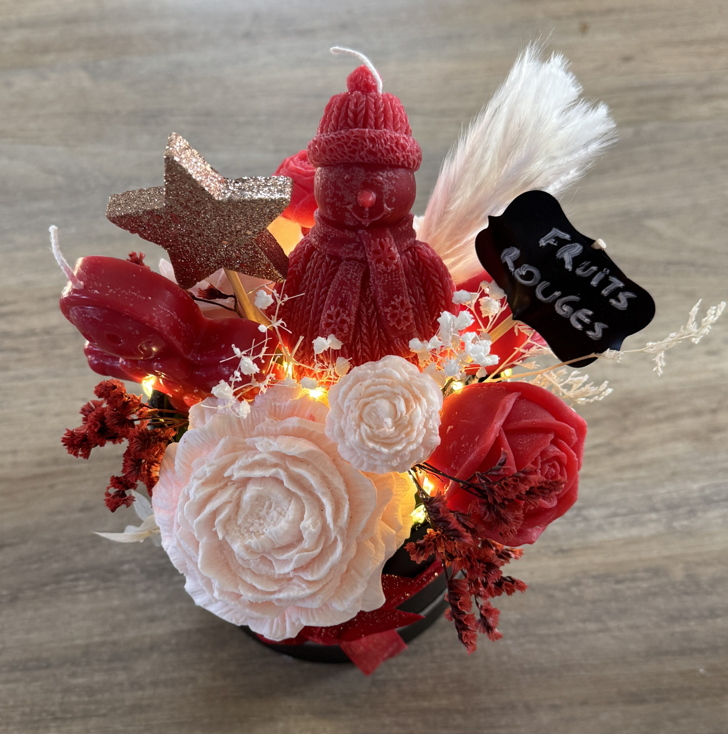 AccueilBoutiqueNoëlBouquet fleurs bougie rouge blanc lumière Noël