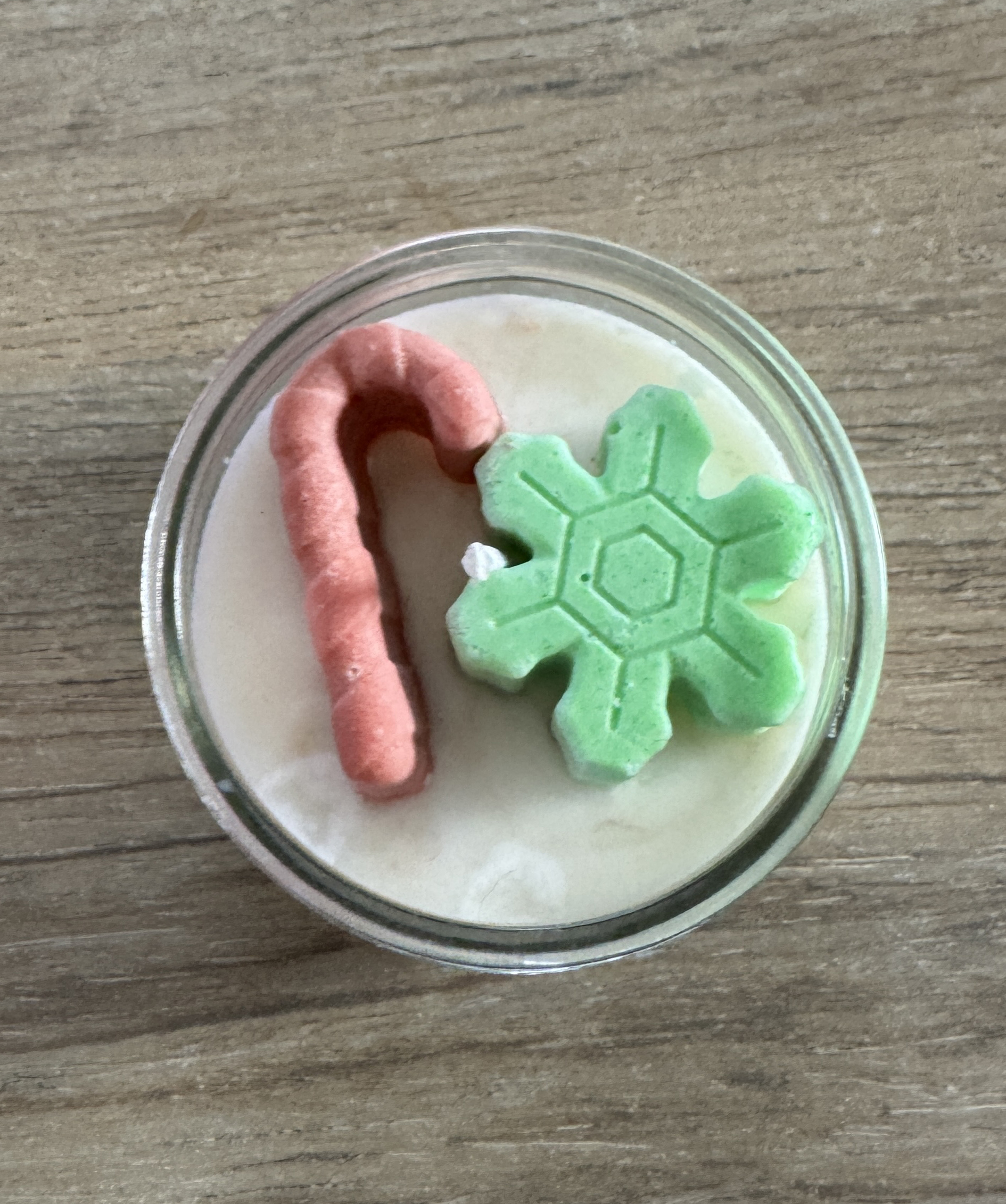 Pot de bougie “flocon canne de Noël” Cire bio. Élégante & festive
